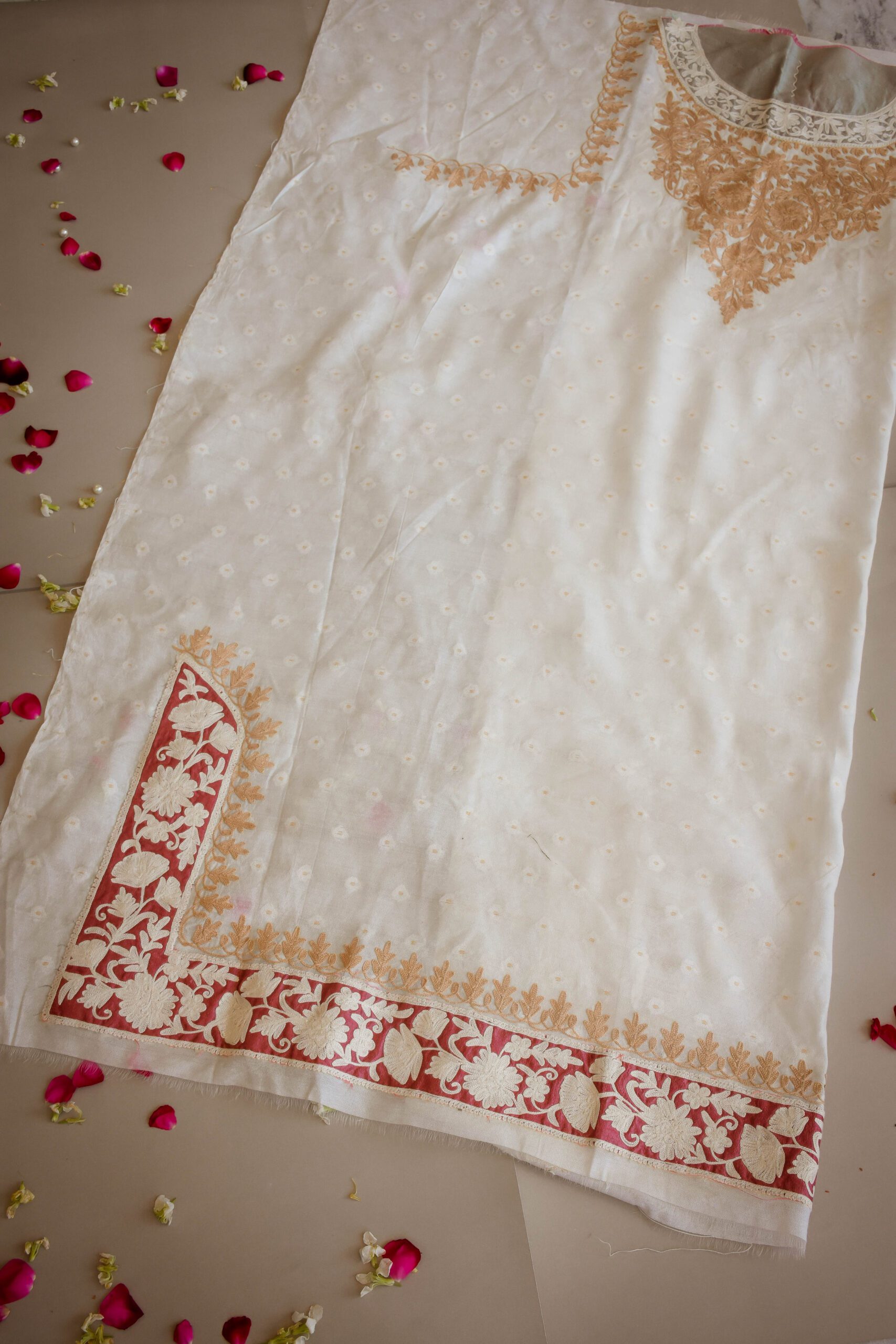 Elegant and feminine, Amber is an artfully illustrated shirt, inspired by the traditional kashmiri phiran with heavily embroidered front and back. To bring a modern spin to this classic practice, a mix of soft colors were used on a white base making this piece truly versatile and timeless in appeal. Â Â