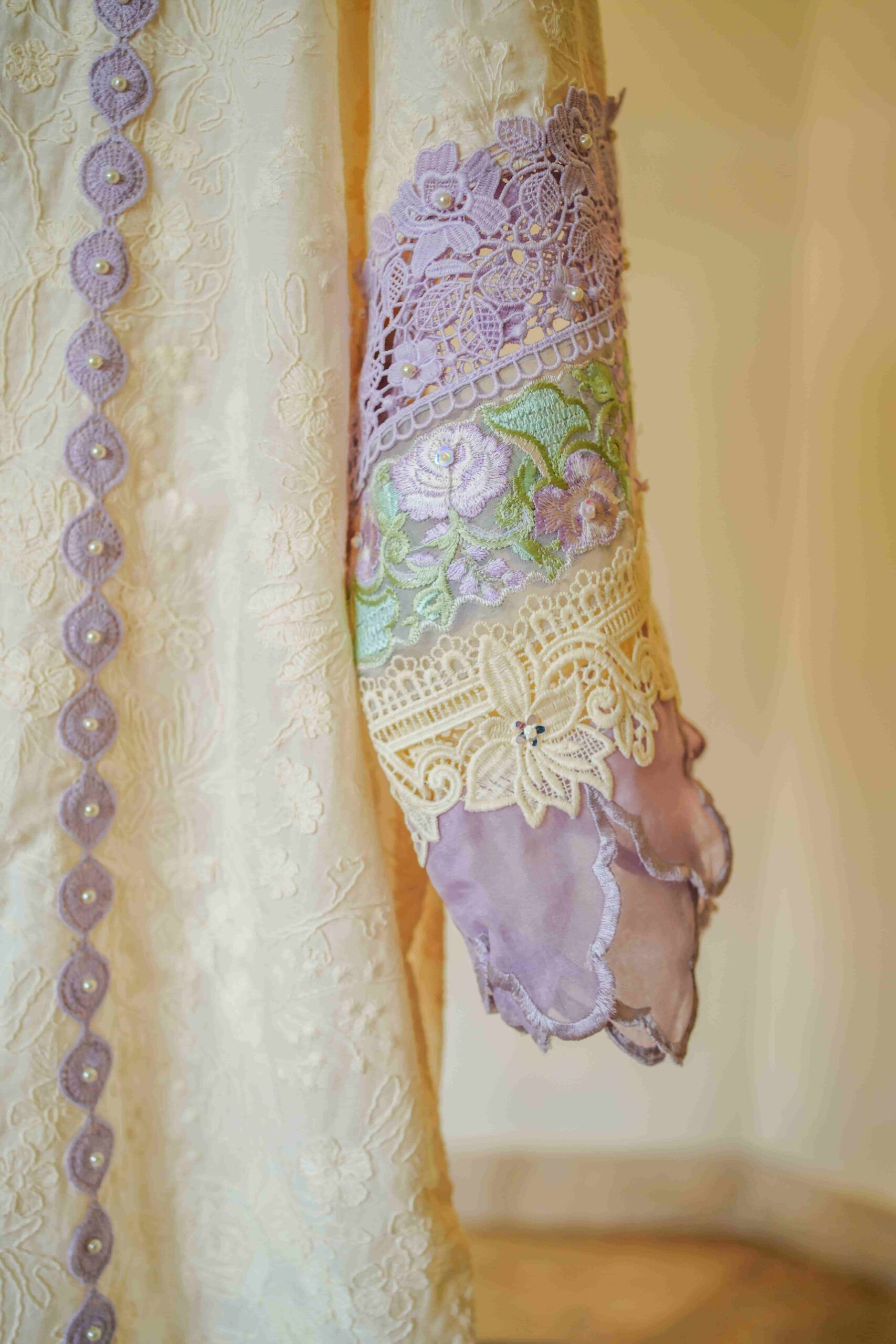 accentuated with delicate lace insets, hand embellishments, and thoughtfully placed floral