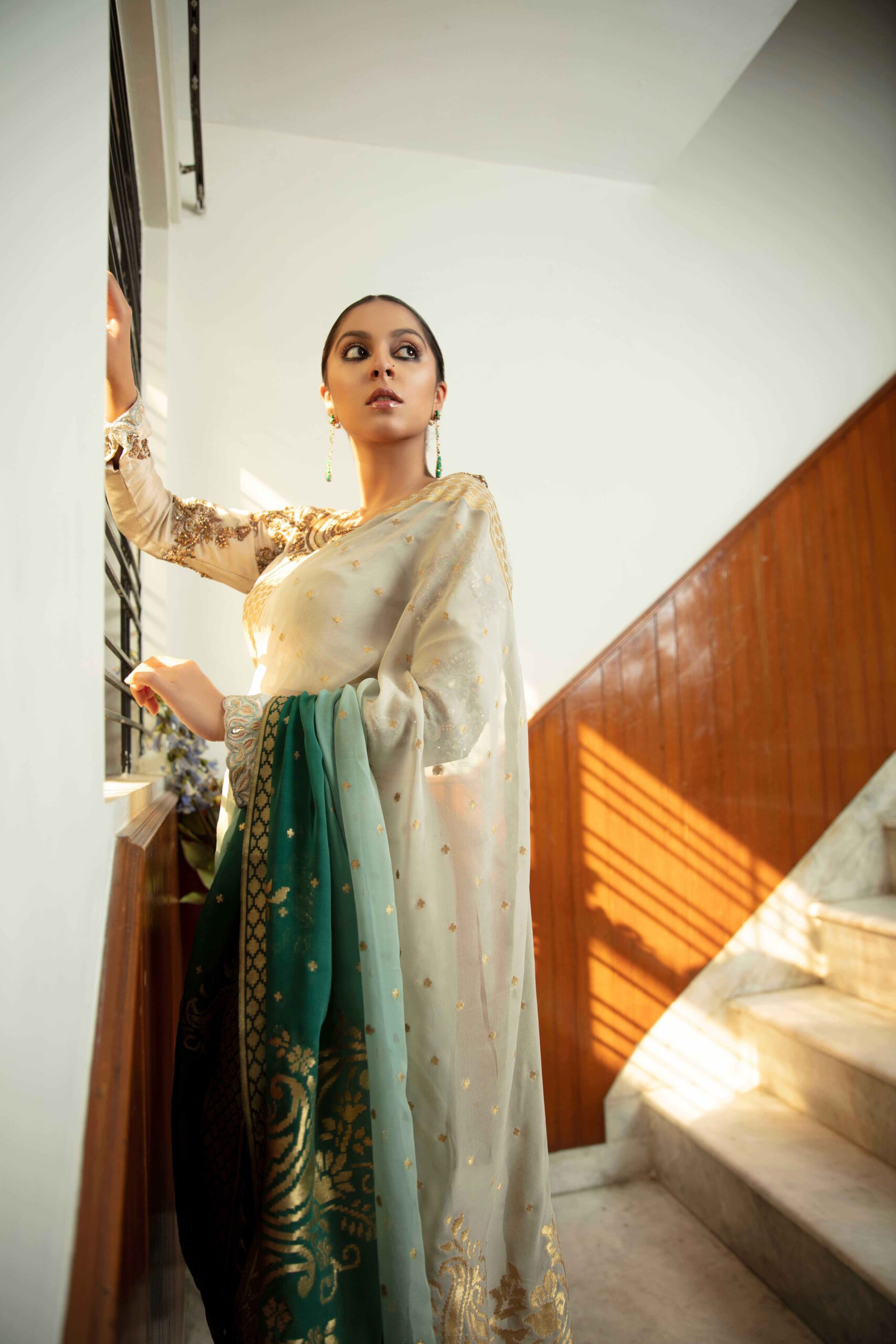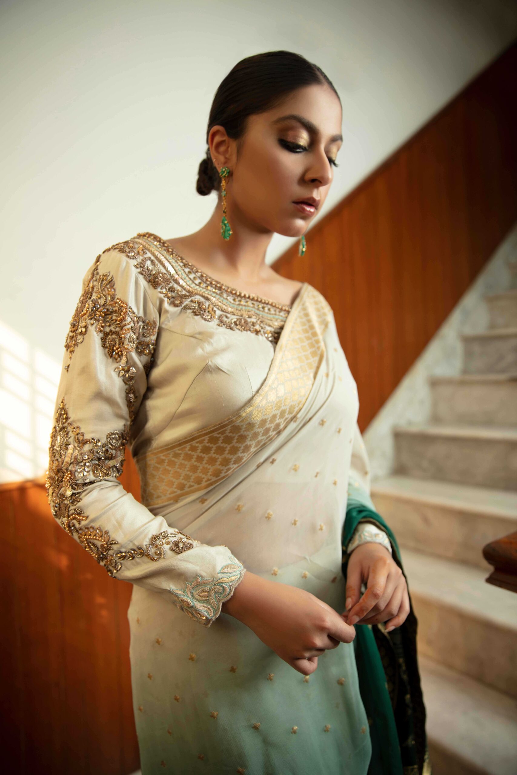 - Saree: Chiffon kundan zaari